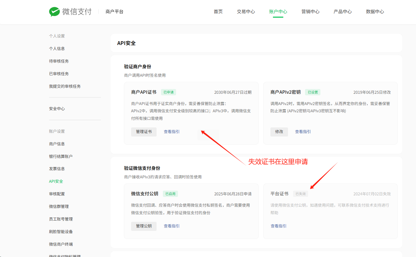 你去申请一个API证书,就会立刻触发生成平台证书 或者平台公钥。