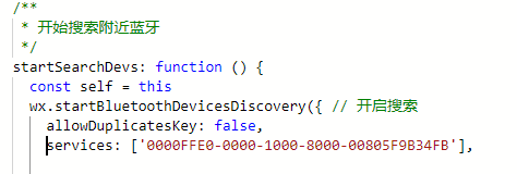 真的无愧是小程序,services 参数传的16进制 UUID 竟然必须是小写。打印的 advertiseSerciceUUIDs 是大写,使用时竟然要用小写,一个字“绝”。