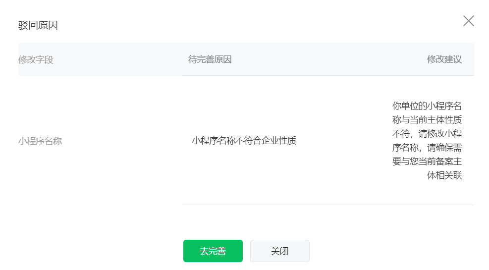 是这样的,本单位(XX商行)开发了一个用于社区交流的小程序,但是在小程序备案中被驳回,理由是小程序名称与主体性质不符,但是如果更改了小程序名称为XX商行就显然与服务内容不相符,请问这种情况如何解决?