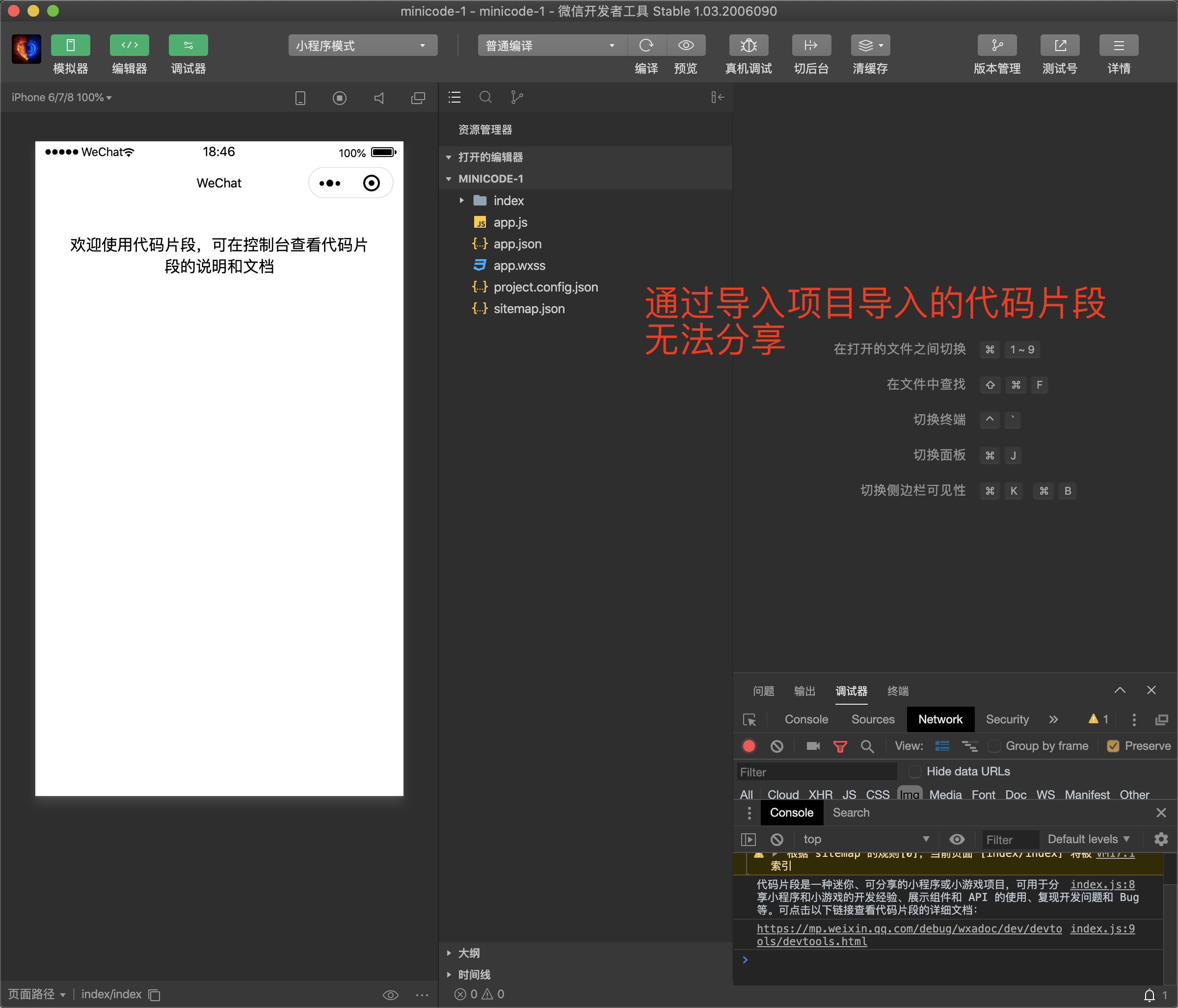 1、新建项目是无法分享代码片段的,要新建一个代码片段,再分享。