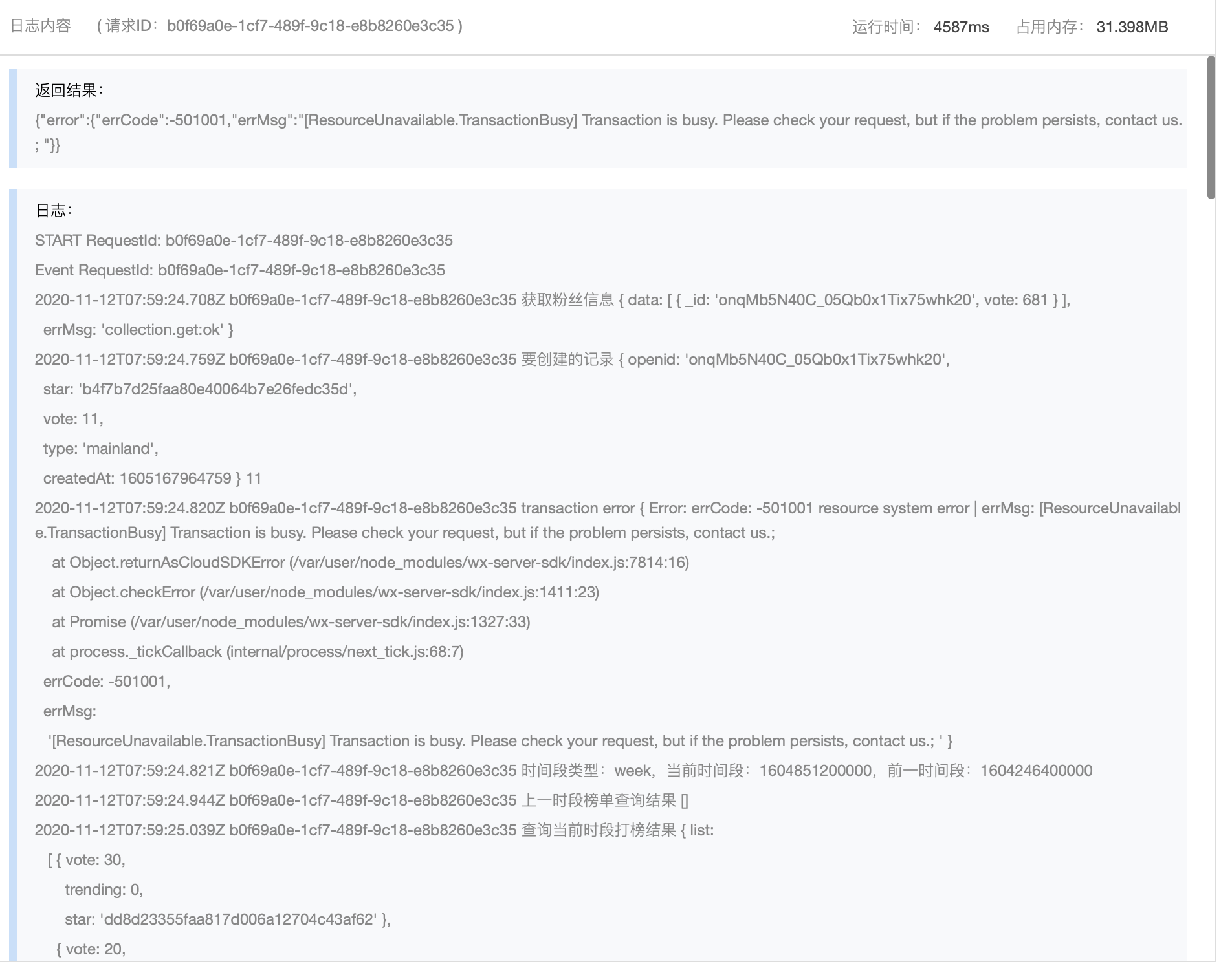{"error":{"errCode":-501001,"errMsg":"[ResourceUnavailable.TransactionBusy] Transaction is busy. Please check your request, but if the problem persists, contact us.; "}}