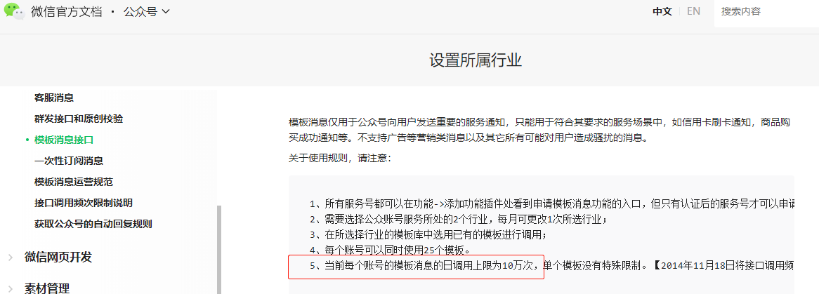 公众号看到的模板限流和开发文档看到的不同,到底哪个为准?