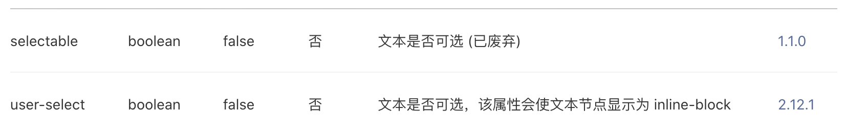 基础库 2.12.1, text 组件在启用 selectable 情况下,表现为 CSS block element。