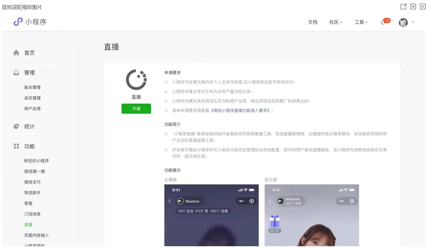 我小程序需要开通直播功能,但小程序后台找不到直播组件