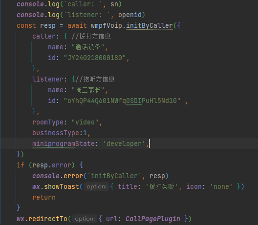 所以说在initByCaller中,businessType=1时,设备呼叫手机微信,caller.id 传的参数其实没有作用,他会去取注册设备(registerMiniProgramDevice )时使用的SN。