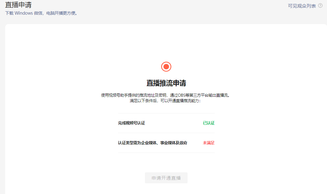 这个视频号是认证的政府单位 也认证通过了 但是仍然没有推流直播权限 请问有没有人知道原因 该如何解决?求助求助!