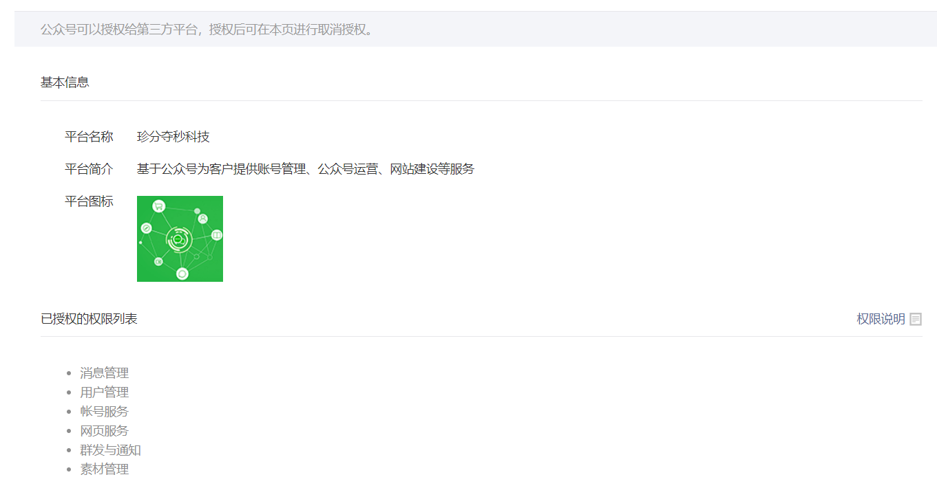 第三方平台:珍分夺秒科技到底是否影响公众号正常运营使用,都不清楚什么时候给它授权的近期经常报警