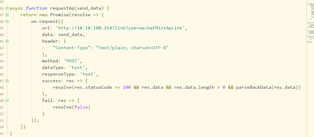 当前手机通过wx.request连接设备(协议: http://10.10.100.254),但报错误{"errMsg":"request:fail url not in domain list"},我们通过小程序后台-开发-开发设置-服务器域名又无法增加http协议的域名配置,问题得不到解决。