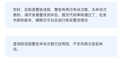 你好 很抱歉影响使用体验。关于小程序违规申诉次数超限问题,可通过对应封禁站内信客服咨询入口,联系客服发起申诉,会有相应流程进行处理。