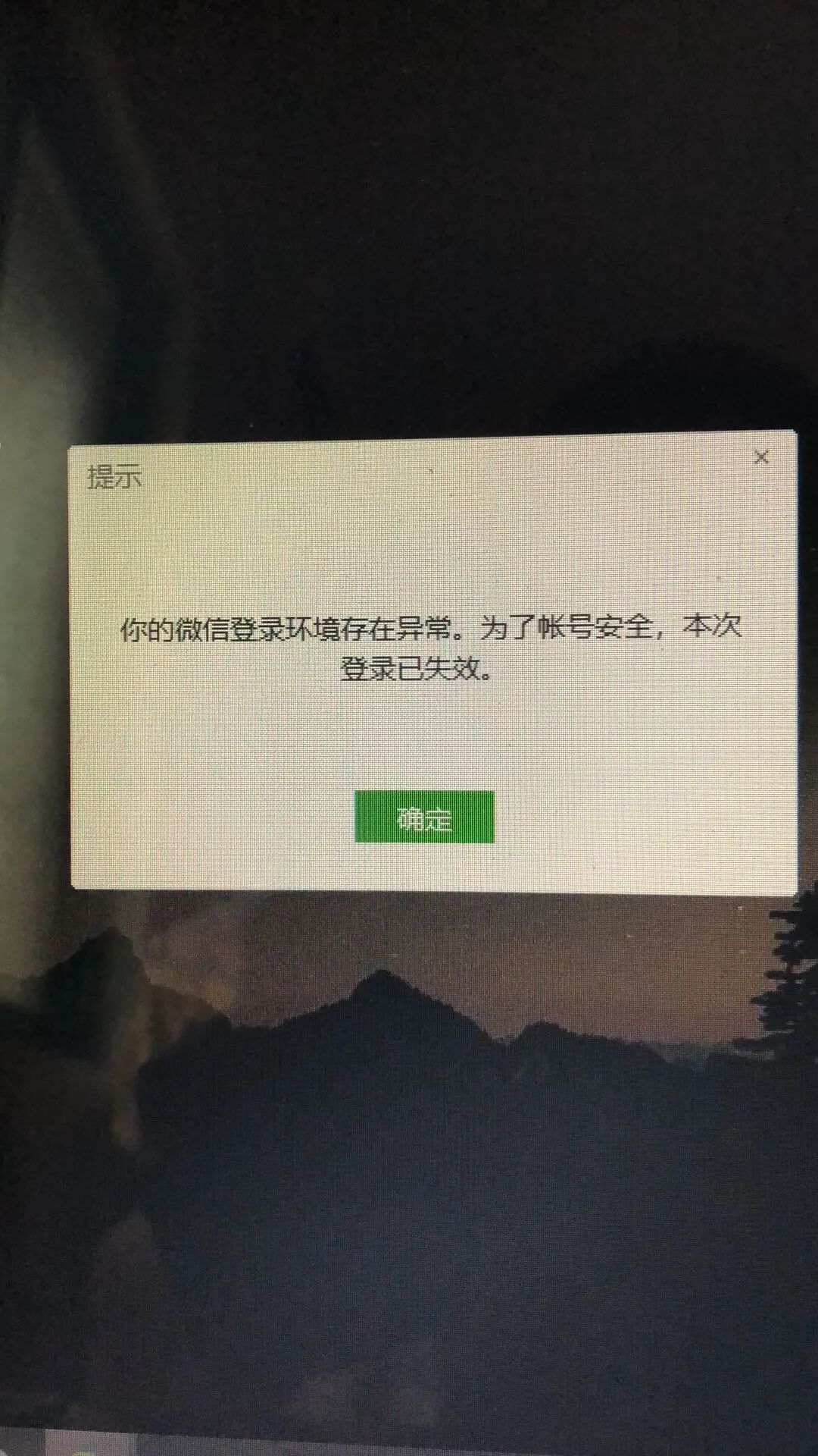 你好,提示“登录环境异常,本次登录失效,请重新登录”的问题,重新扫码登录即可,出现该提示一般是由于微信帐号被其它用户投诉导致(如:涉嫌频繁发送营销类广告骚扰信息等,请遵守微信使用规则,并规范个人行为,谢谢!)