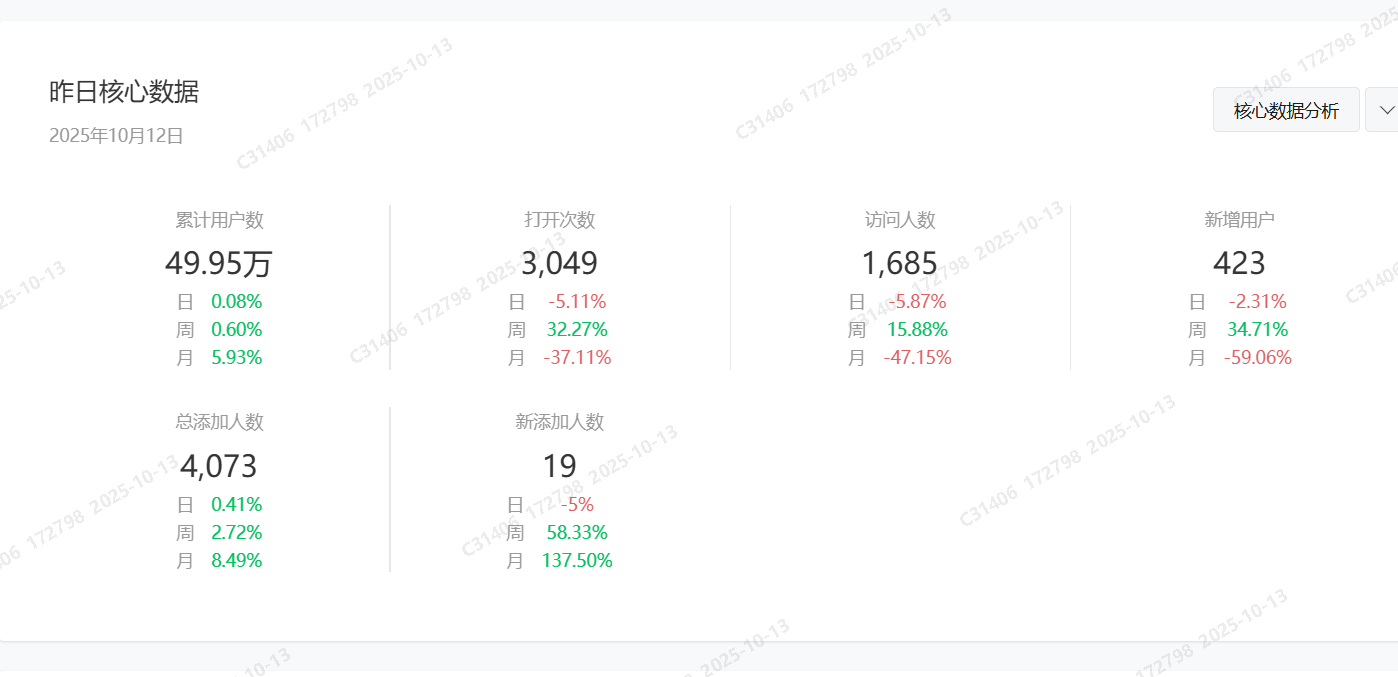 新添加人数:当日较前一日相比,新增添加到“我的小程序”的用户数。
