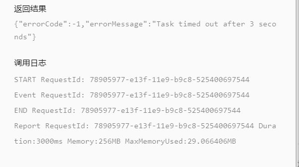 这是在云开发控制台云函数测试的截图,都是3秒超时返回报错