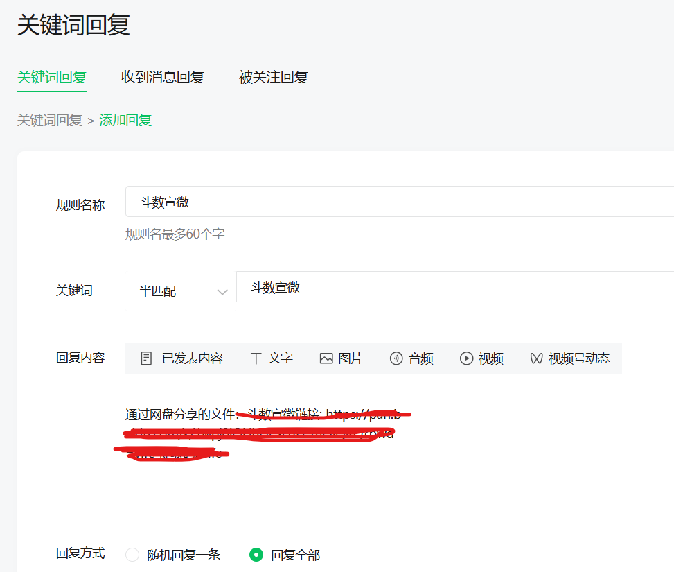 这是后台的设置,都设置好了,可是测试的时候还是失败了,收不到设置的自动回复,好像没有触发一样,明明都设置好了。无论是全匹配模式和半匹配模式,都测试了,都无法收到回复。是设置好了之后有时间延迟嘛?还是立即生效的?期待技术出面答疑,谢谢!