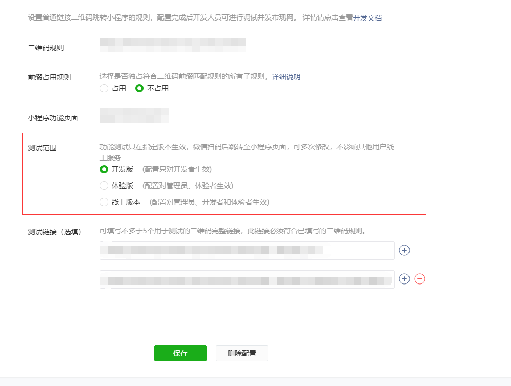 配置了扫普通二维码打开小程序的设置如下: