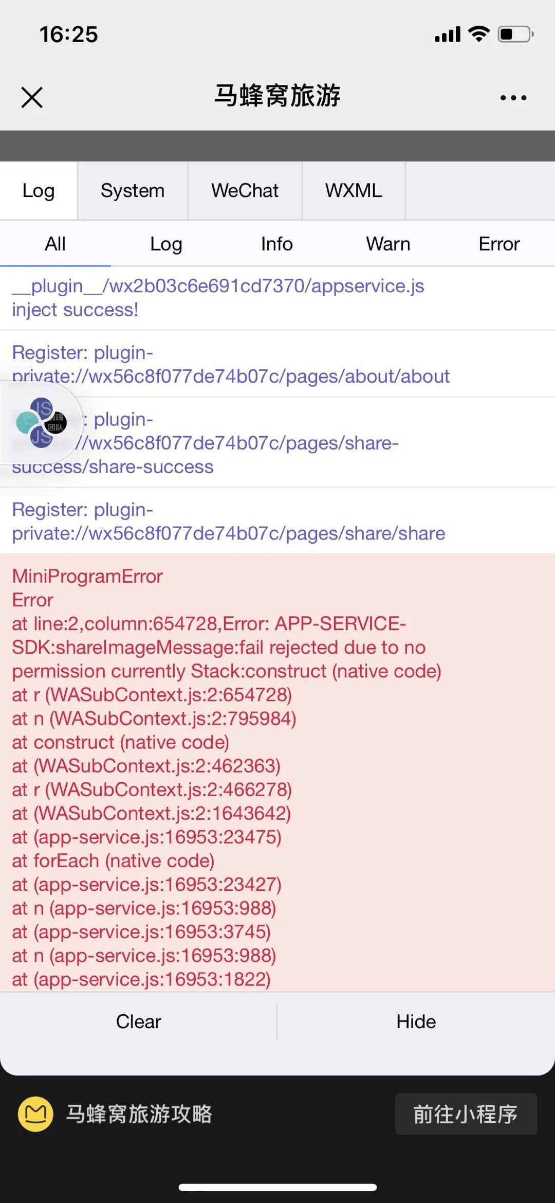 VM1038 WAService.js:2 Error: APP-SERVICE-SDK:lanDebug:fail rejected due to no permission currently