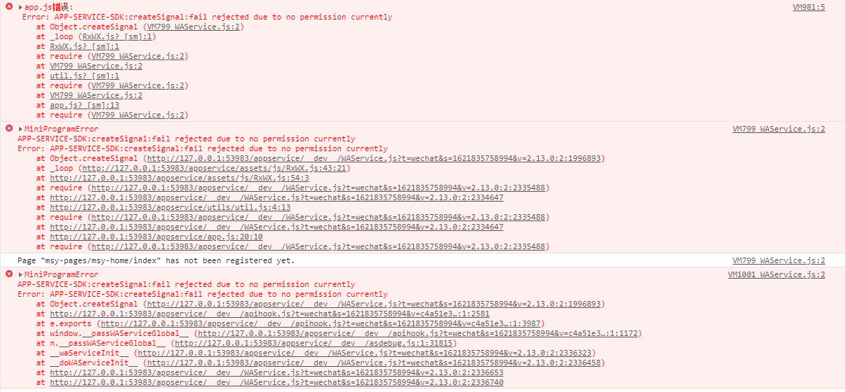 VM1201 WAService.js:2 Error: APP-SERVICE-SDK:lanDebug:fail rejected due to no permission currently