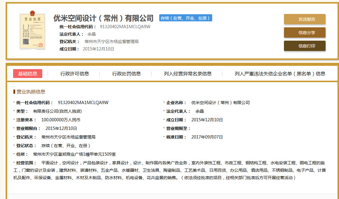 用户的法人信息和企业信息填写无误,在www.gsxt.gov.cn/index.html 查询过。