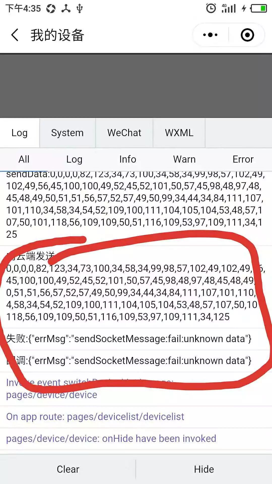 wx.sendSocketMessage 在调试器上面使用正常,在真机上面就出错,有没有遇到过这个问题的?说说经验,谢谢