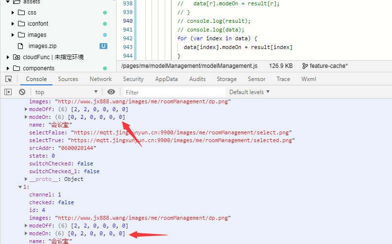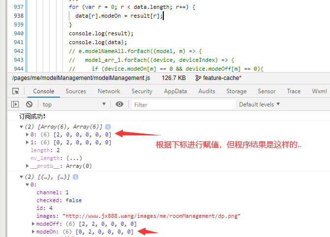 for (var index in data) { data[index].modeOn = result[index] } for (var index in data) { result[index] = data[index].modeOn } console.log(result); 不清楚你是要把result的值赋给data的modeOn 还是 data的modeOn的值赋给result