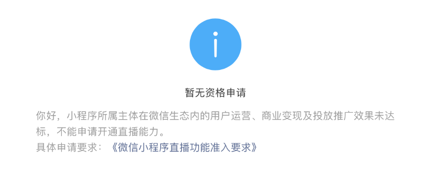 你好,经核实该小程序现已具备开通直播的能力,请重新申请开通。