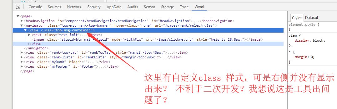 更新开发者工具后, 点击元素标签,无法查看自定义的样式,显示的都是系统默认样式