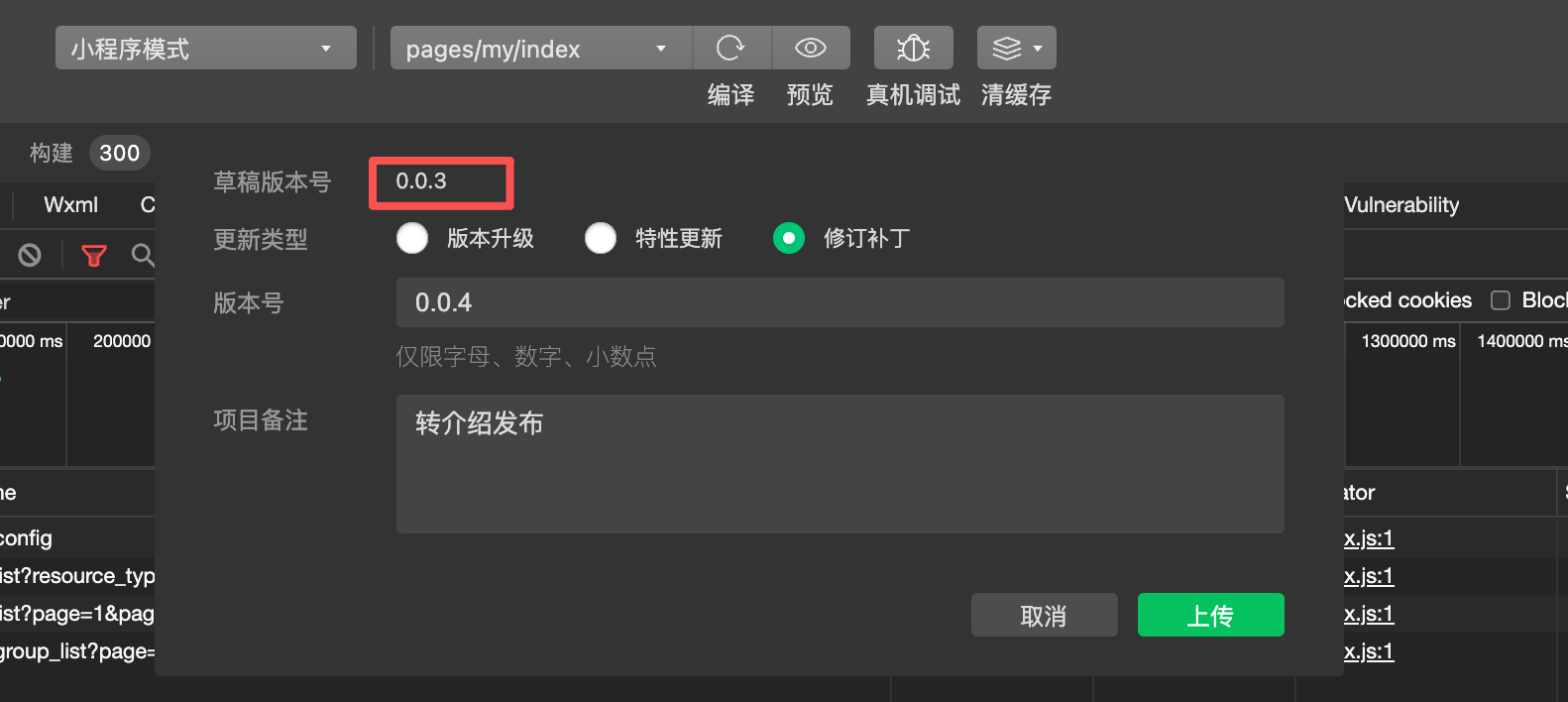 通过开发者工具上传草稿的时候获取到的草稿箱版本是0.0.3