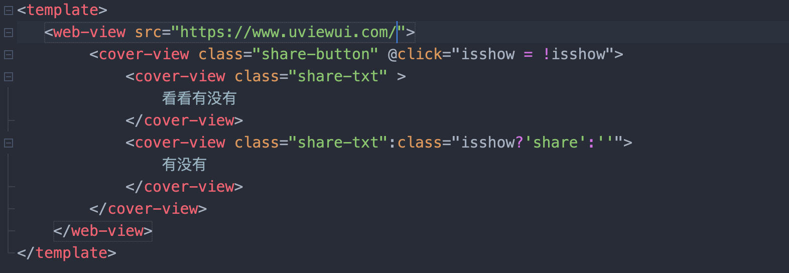 这么说吧,只要有web-view这个标签,那整个页就只能有这一个标签,其他标签都没用
