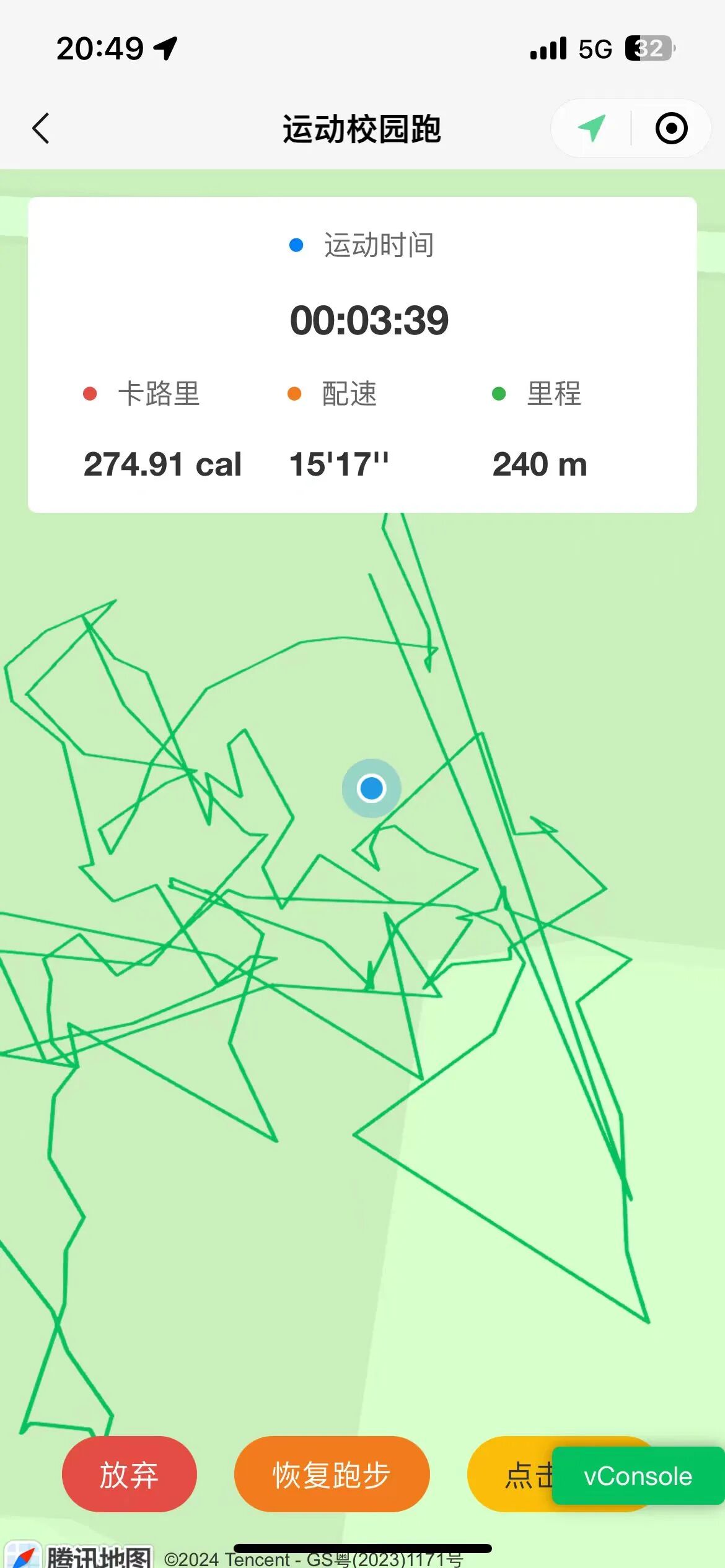 使用场景:企业微信(仅ios)打开小程序,用户在场地内运动,记录轨迹