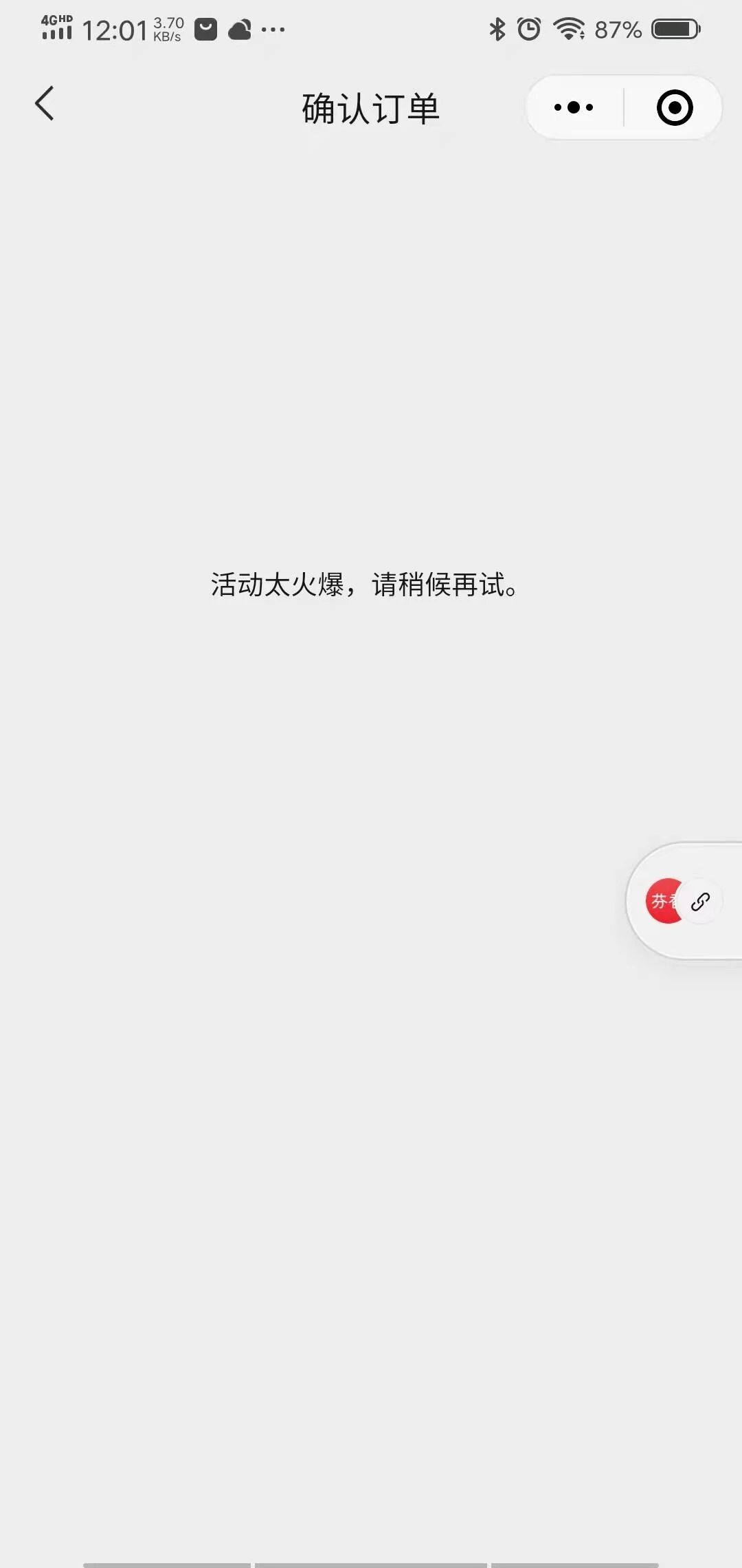微信小商店,有一个商品可以正常下单,其它商品下单出现“活动太火爆,请稍候再试”出错页面是什么原因?