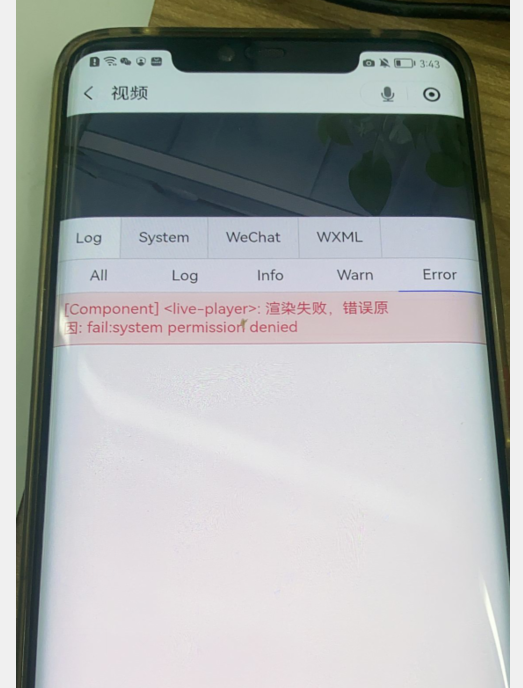 微信小程序 live-player渲染失败 fail:system permission denied。