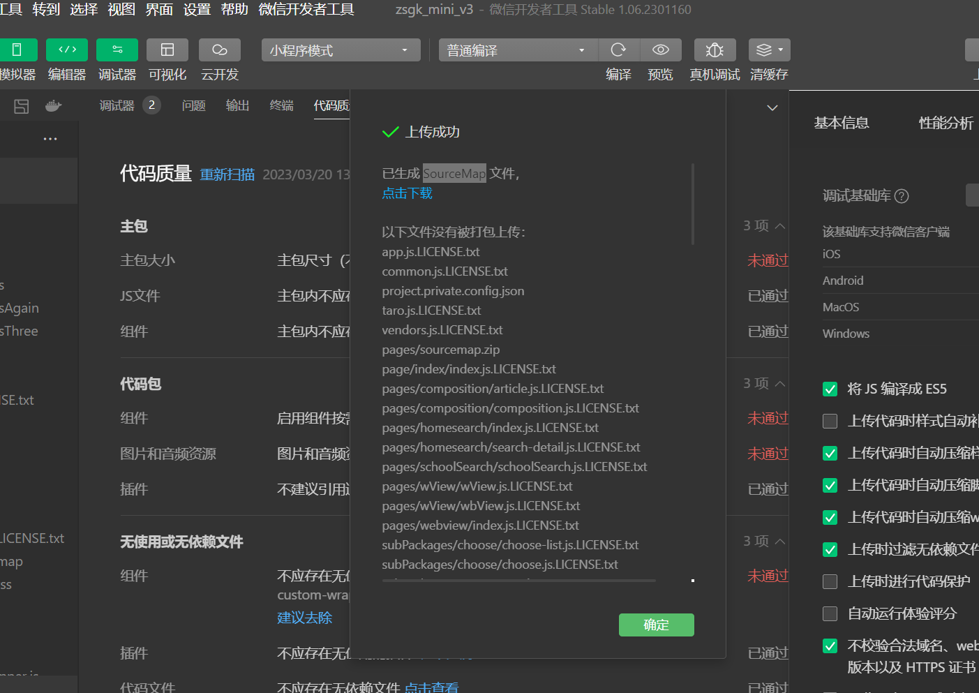 使用小程序开发者工具进行上传代码,JS编译成es5,压缩代码都打开了,上传后的SourceMap文件还是空的。之前还是正常上传下载的。急急急!SSourceMapourceSourceMapSourceMapMap