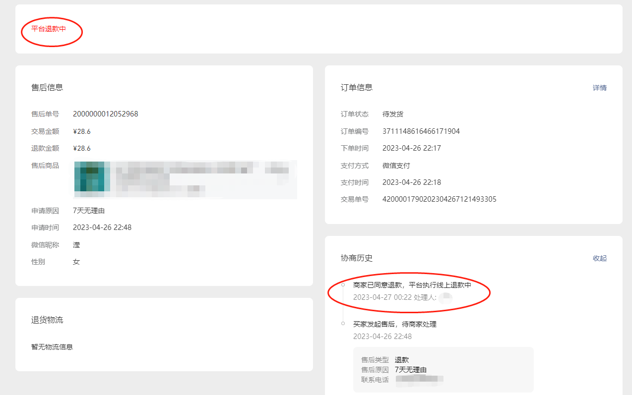 订单编号3711148616466171904,售后单号2000000012052968,客户一直要求退款,平台又卡住了。