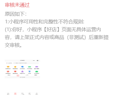 小程序审核将别人得商城小程序页面截图到我得小程序,告知我没有商品并且拒绝了我得版本审核?