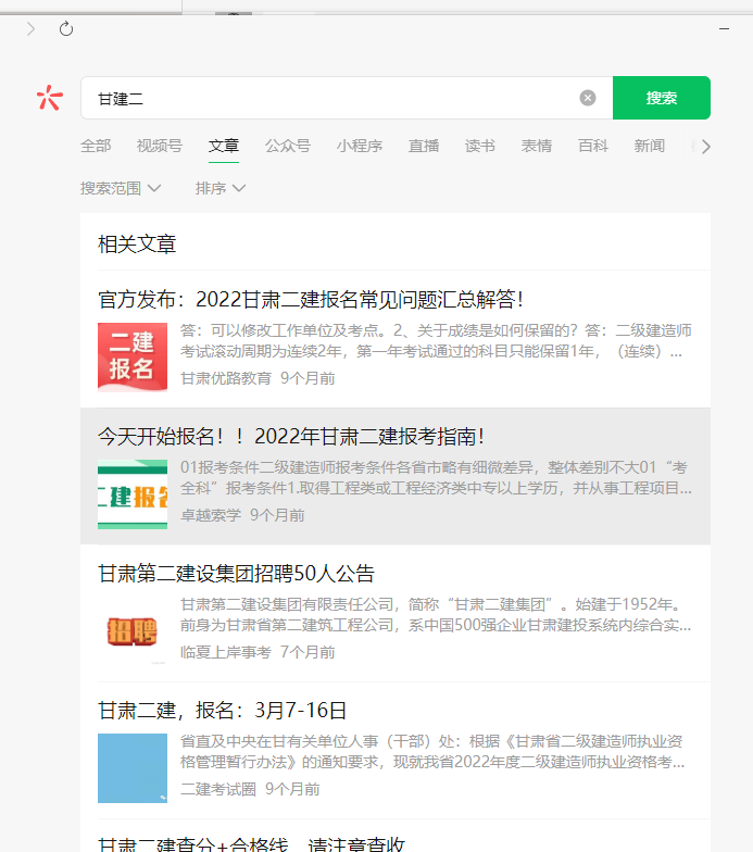 之前微信公众号搜索的收录的也都是好好的,突然有一天,微信公众号里面的文章全部都搜不到了,不管是搜索链接、还是输入文章标题全部都搜不到了?这是为什么?之前也没有任何提示,突然就完全搜不到了,我们同行很多人都是发一样的文章,而且很多人都是抄袭我的文章,为什么别人的好好地展示,然而我的就是现在没有展示呢?在微信里面搜索甘建二,只能看到这个公众号账户,但是显示不了我的文章,并且文章也没任何排名,我的文章我敢保证都是个人原创文章,同行很多都是抄袭我的文章,举报都没用。最后缺把我的原创文章搞到收录不了,以前是可以搜到的,而且排名还很好,麻烦您帮我解决一下,可以吗?