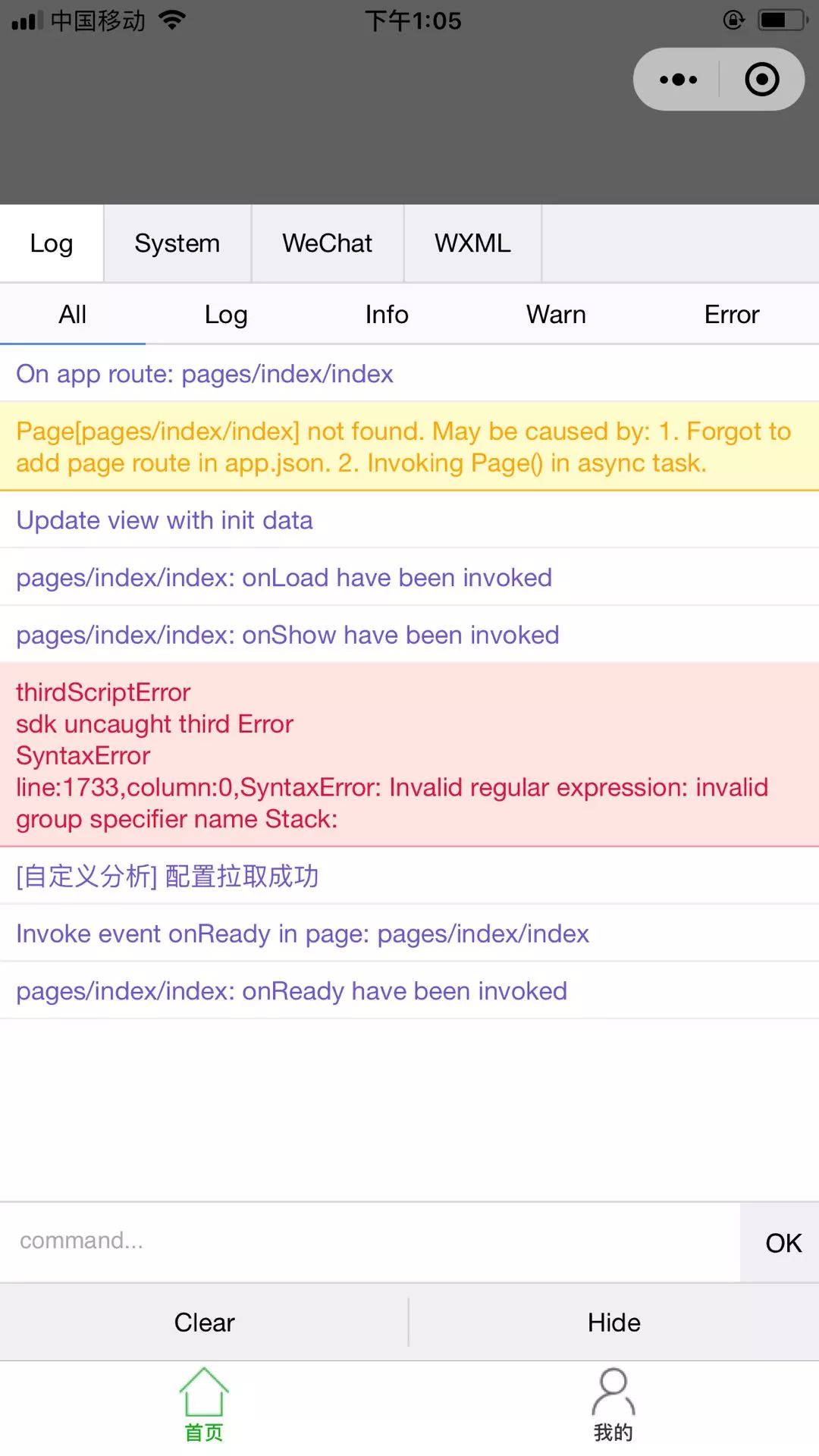 3、接1,同样的程序,使用“预览”,系统给出码后,2中的同样的ios的设备,访问后,小程序都不能成功launch,手机端debug里出现的问题代码附后。