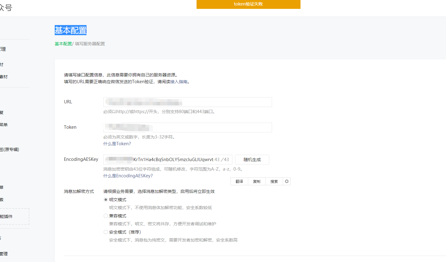 通过公众平台测试账号是可以配置成功地,但是通过“基本配置”中一直提示Token,验证失败