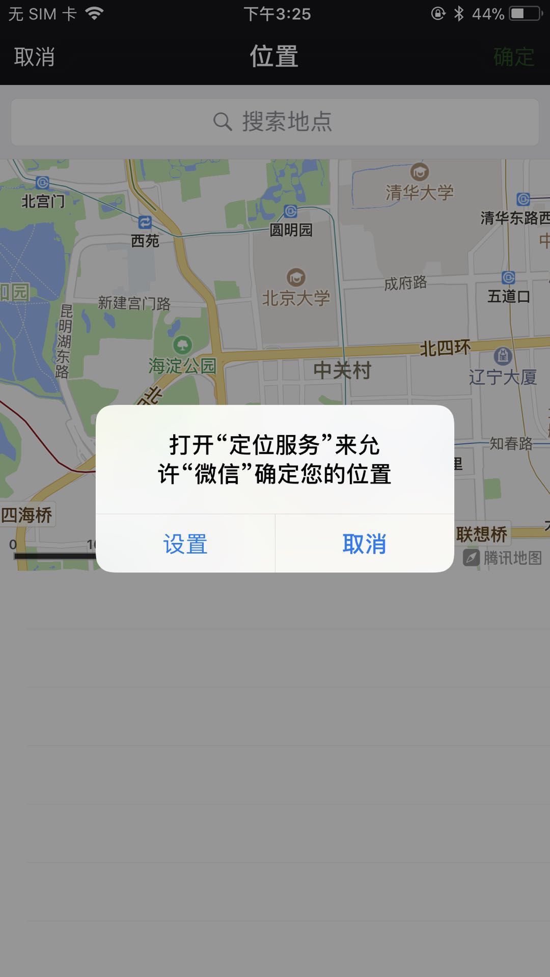 当手机定位功能过未开启时,wx.chooseLocation就可以给用户提示来开启手机定位功能,如下图。但是wx.openLocation却没有这种提示。