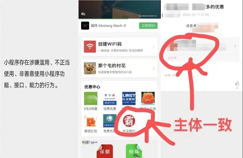 小程序中有个按钮“关注我们”:可以点击进入公众号链接,这个公众号和小程序是同一主体,这样算接口滥用吗?
