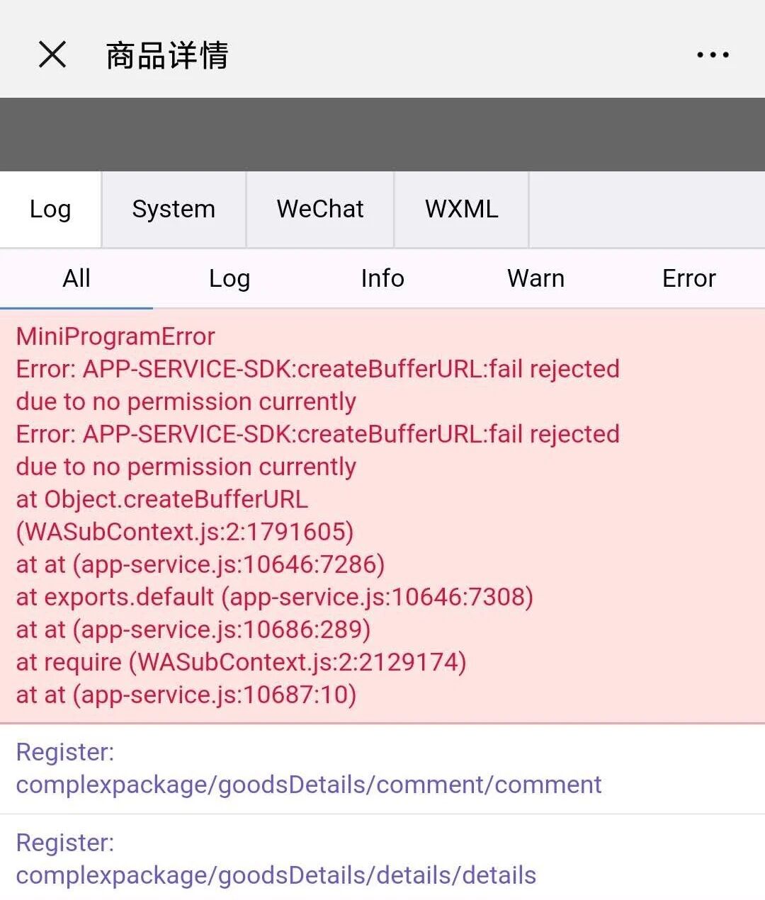 报错: Error: APP-SERVICE-SDK:createBufferURL:fail rejected due to no permission currently,