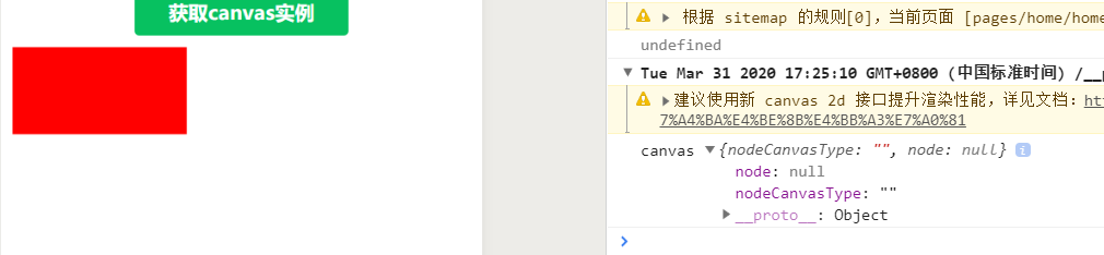 wx.createSelectorQuery().select('.canvas').node(function(res){ console.log(res.node) // 节点对应的 Canvas 实例。 }).exec()