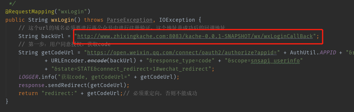 redirect_uri: http://www.zhixingkache.com:8083/kache-0.0.1-SNAPSHOT/wx/wxLoginCallBack