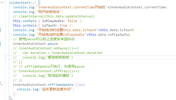 innerAudioContext.offTimeUpdate 确实存在不执行的情况,来回跳是因为你的 innerAudioContext.onTimeUpdate 一直在监听