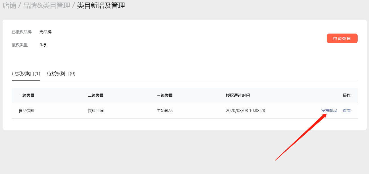 类目审核已经通过,上传商品时到三级类目就显示无品牌!