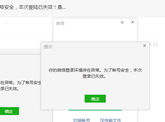 今天公司已经上班了,公司给的微信积累了一堆客户没回复了,突然一下子就1分钟掉一次,提示“你的微信登陆环境存在异常。为了账号安全,本次登陆已失效!!”