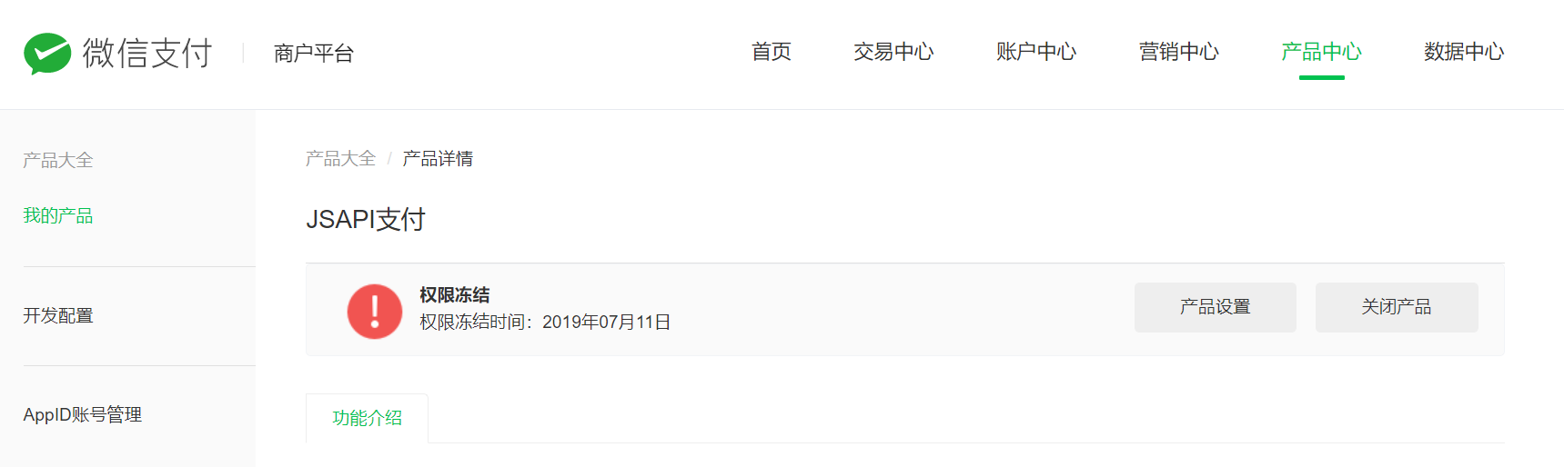 已经确认恢复支付权限,但JSAPI支付权限仍处于冻结状态,无法使用功能,麻烦处理一下,谢谢