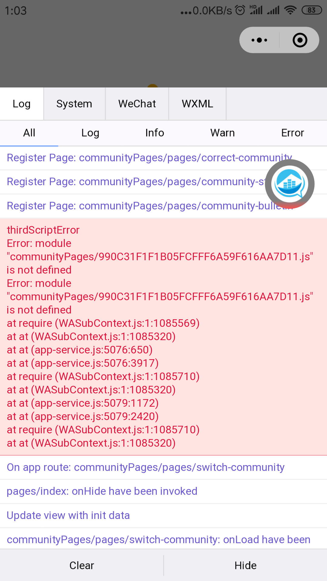 在开发工具和整机测试上都能打开这个页面,但是一到体验版本就报错
