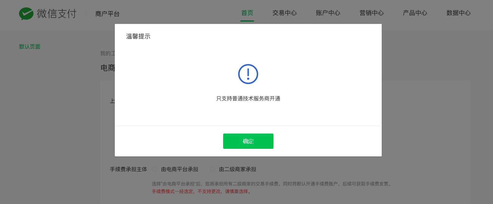 但是我前往申请电商收付通的时候还是会提示“只支持普通技术服务商开通”?