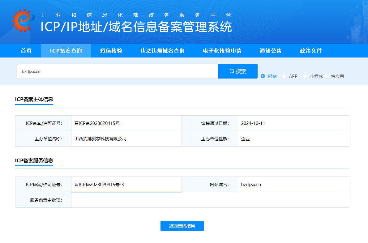 我们的域名(https://visits.bzdj.sx.cn)及名下的链接(https://visits.bzdj.sx.cn/pro/#/pages/technicians/technicians)(https://visits.bzdj.sx.cn/pro/index.html#/)没有强制或者特别的要求,备案主体也是地方平台公司,域名备案号:晋ICP备2023020415号-3。