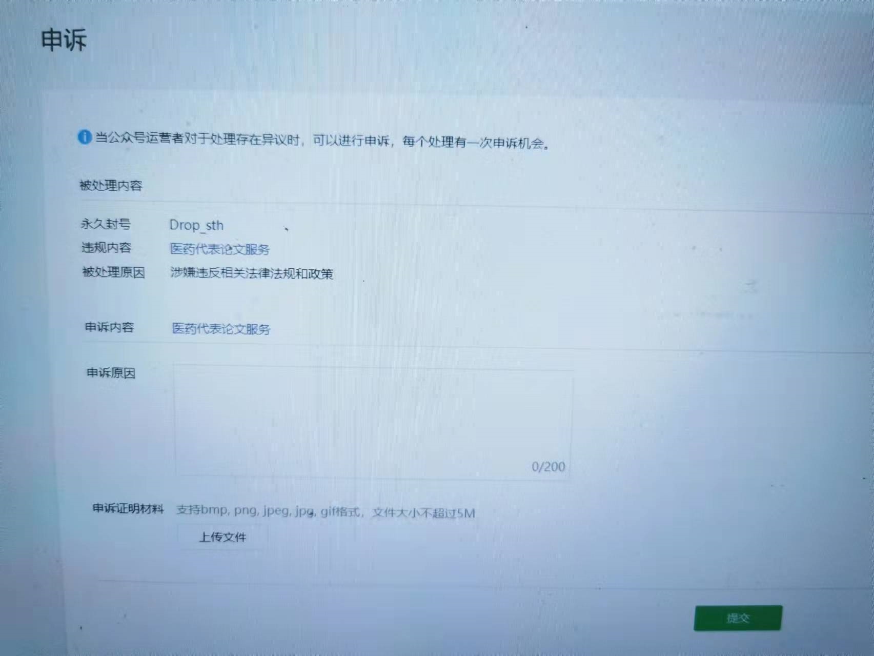 给我一个“医药代表论文“”的原因,说涉嫌违规。首先我确实不太了解,之前别人找我,说提供论文写作,润色服务,可以给粉丝提供更大价值。我的粉丝有这个需求,我是想能提高粉丝粘性,多个服务,就帮着发了,确实没有做违反法律法规的事情,只是基础的论文咨询服务,而且不是我提供,我只是发布。
