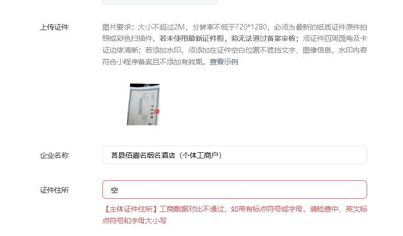 小程序备案中有一项证件住所,营业执照无经营地址应该如何填写?